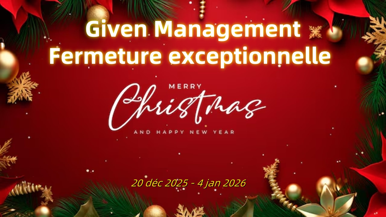 Nous vous répondrons le plus rapidement possible dès notre reprise, en fonction du niveau d’urgence de votre demande. Nous tenions également à vous remercier pour votre confiance tout au long de l’année 2025. Plus que jamais notre but est de vous satisfaire et toujours être à vos cotes pour réaliser vos projets ! Toute l’équipe Given Management vous souhaite de joyeuses fêtes de fin d’année ainsi que ses meilleurs vœux pour la nouvelle année 2026 !